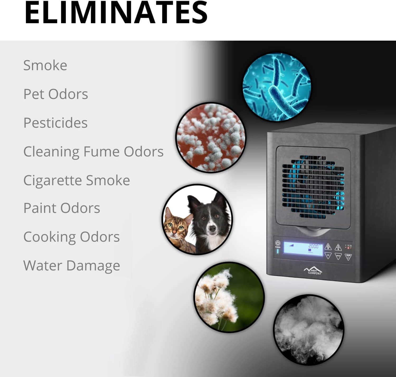 • POWERFUL OZONE GENERATOR: Utilizes ozone technology to effectively remove stubborn odors like cigarette smoke, pets, chemicals & paints; ensuring your space remains fresh and inviting.