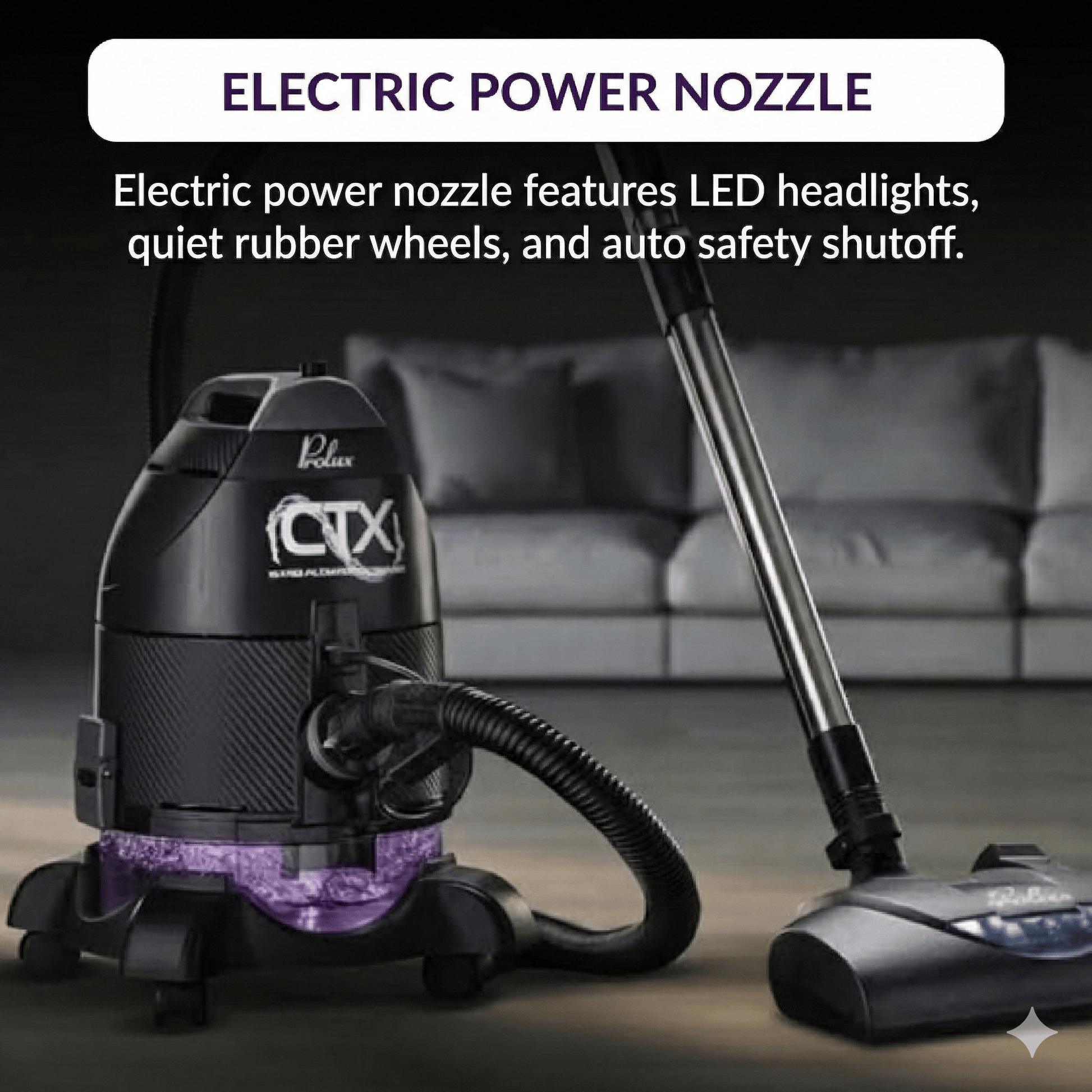* Optional Carpet Shampooer - Not only does the CTX vacuum and purify it can also be used as a carpet shampooer with the optional Prolux Storm shampooer